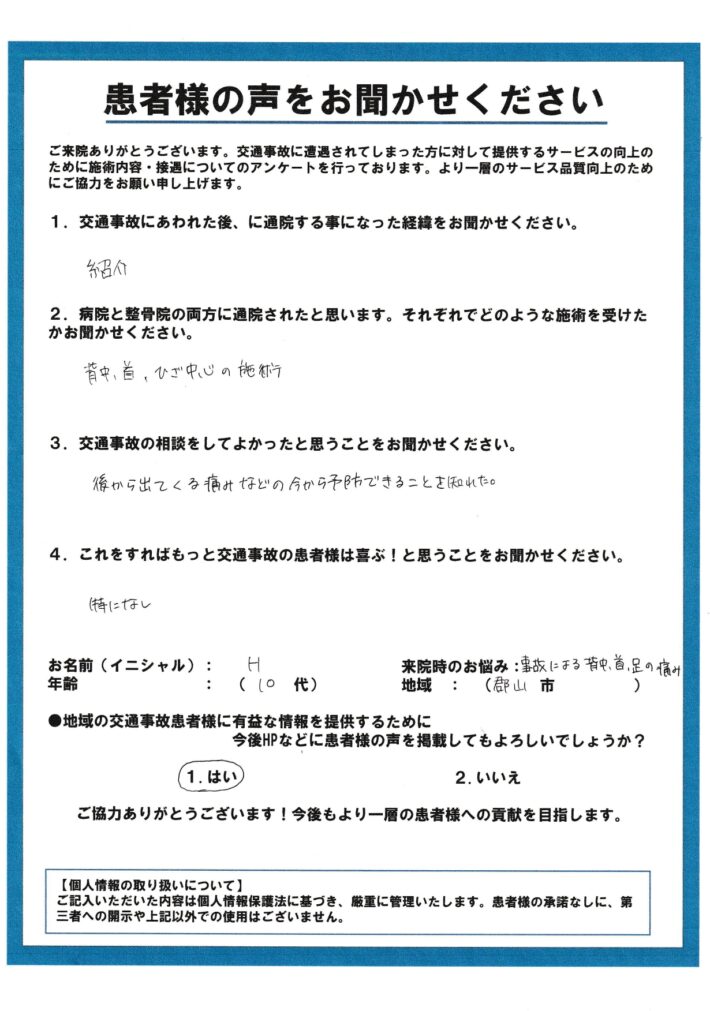 二本松に住んでいて家から近くでこの施術が受けられて良かったです。