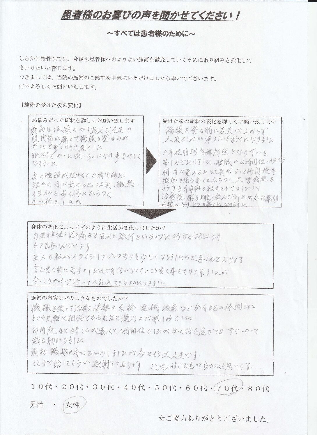 施術をやった後、らくになり歩きやすくなりました