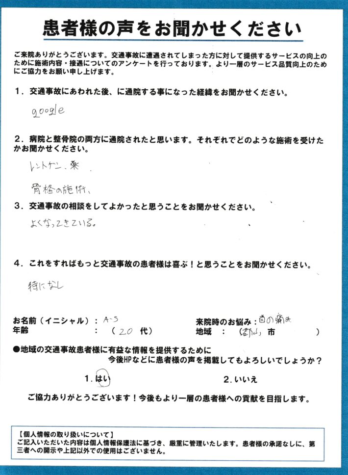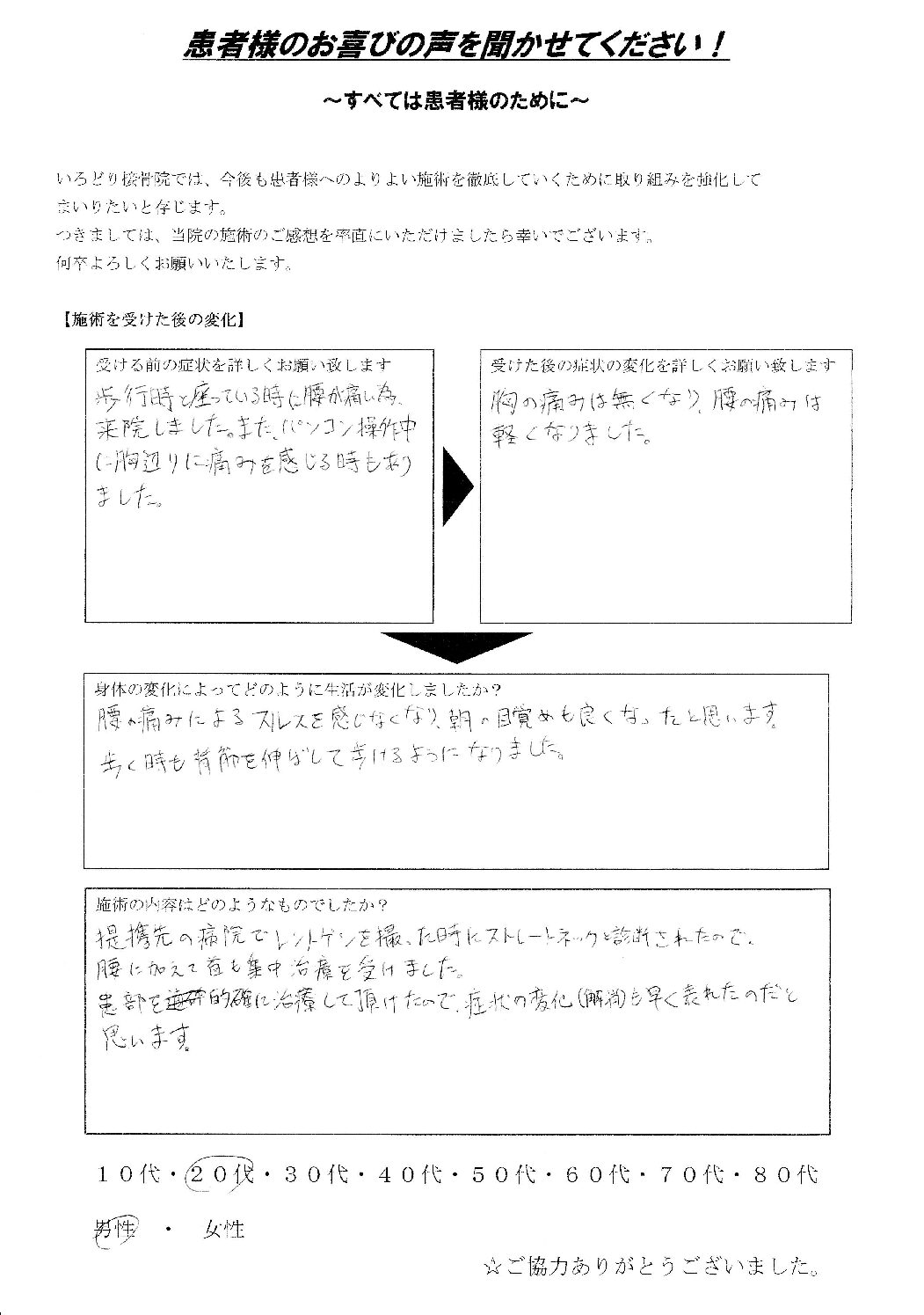 ここまで治してもらい感謝しております。