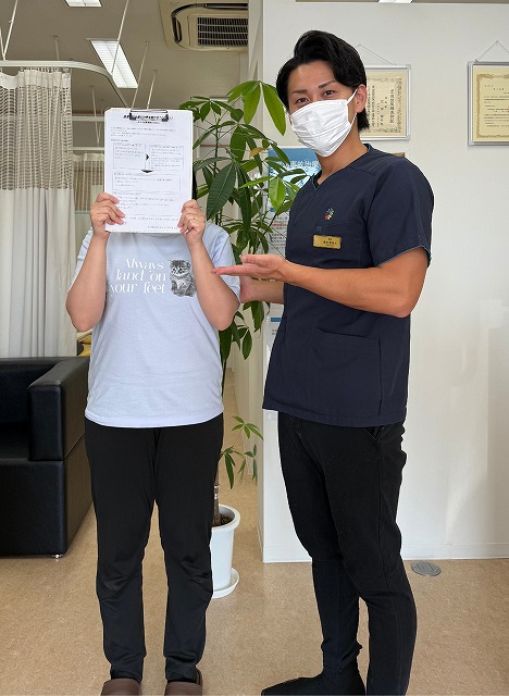 1ヵ月程経った頃、猫背気味の姿勢だったのが、ややまっすぐになり、肩・膝の痛みは治まっていた。