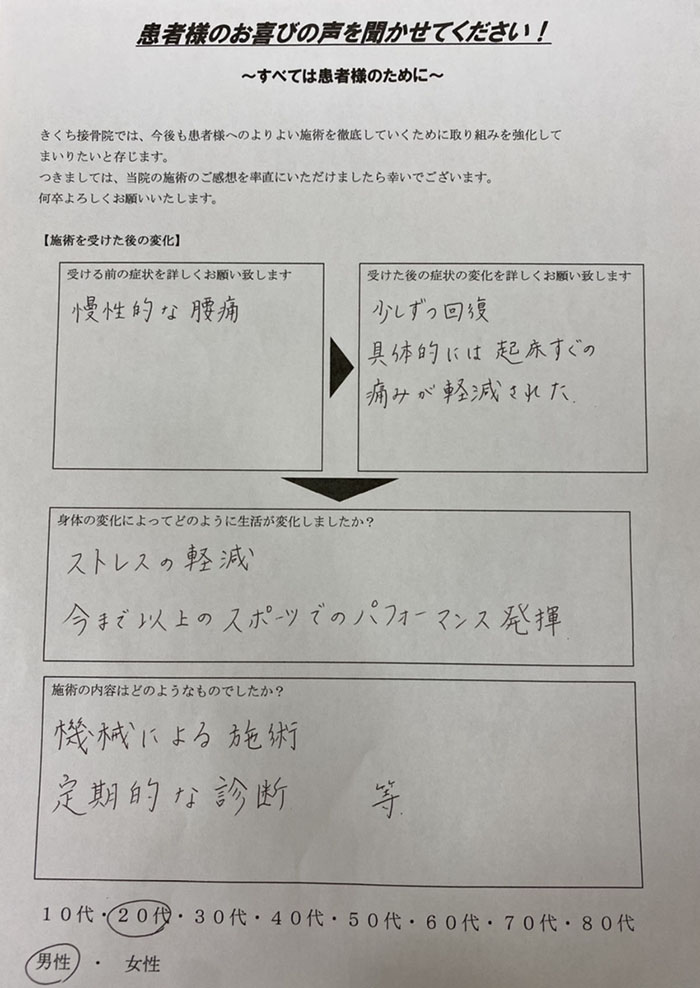 具体的には起床すぐの痛みが軽減された。
