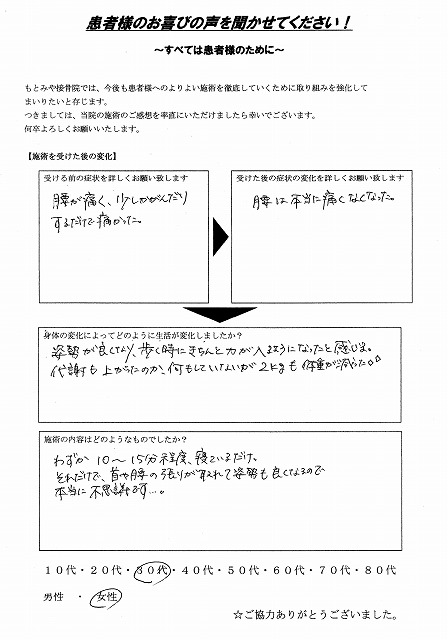 腰が痛く、少しかがんだりするだけで痛かった。